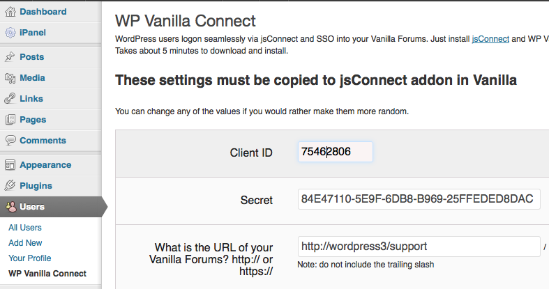 client_idandsecretfrom WP Vanilla Connect and paste these values into jsConnect and test it using jsConnect test url. - Copy your generated jsConnect Login and Redirection URL to enable logins and redirection back to forums after WordPress login.