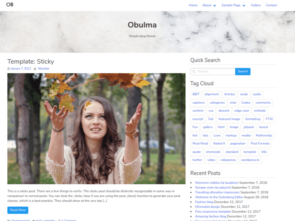 Obulma is a simple blogging WordPress theme. With clean and minimal design it is mainly targeted for blogging sites. It uses the Bulma CSS framework. It is cross browser compatible and responsive and looks beautiful on any device and screen sizes. Due to its elegant design users will have a pleasant experience reading your blog posts and articles.