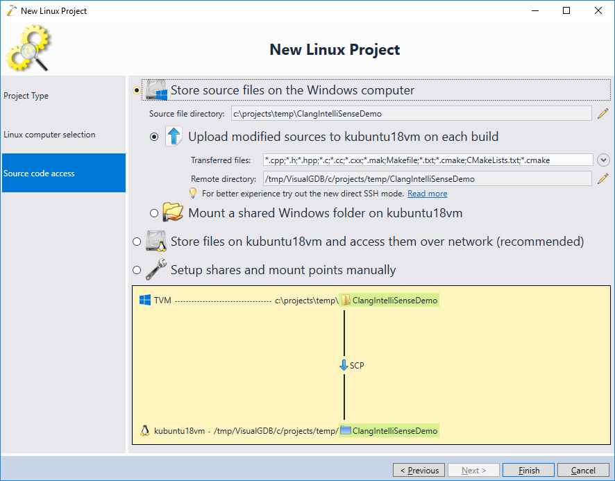- On the next page select “Store source files on the Windows computer”: