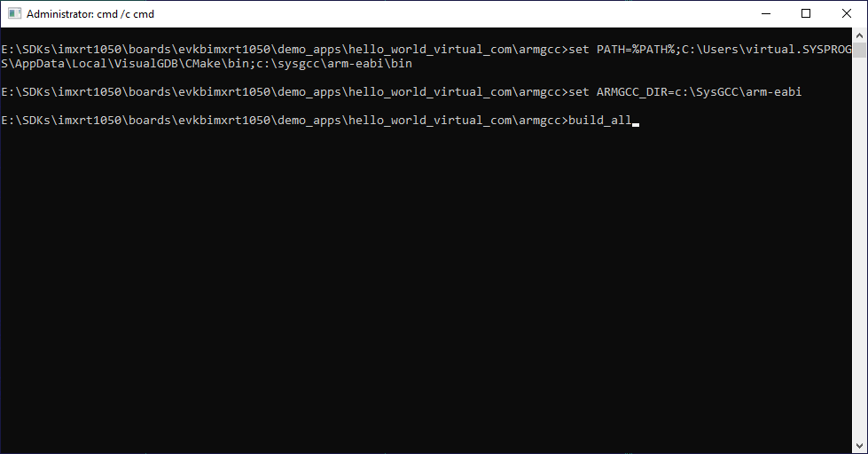 set PATH=%PATH%;C:\Program Files (x86)\CMake\bin;C:\SysGCC\arm-eabi\bin set ARMGCC_DIR=c:\sysgcc\arm-eabi