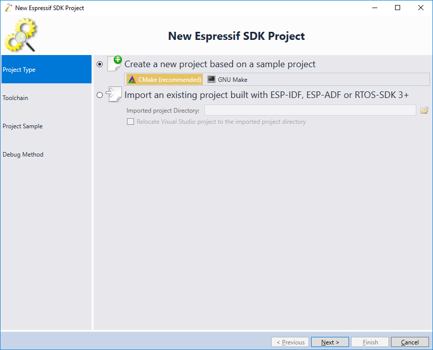 - Start Visual Studio and open the VisualGDB ESP32 Project Wizard: