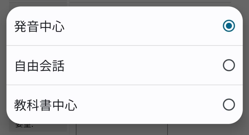 予約画面で「発音中心」「自由会話」「教科書中心」を選択し、教材はVVレッスンの教材か受講者様自身で御用意していただきます。