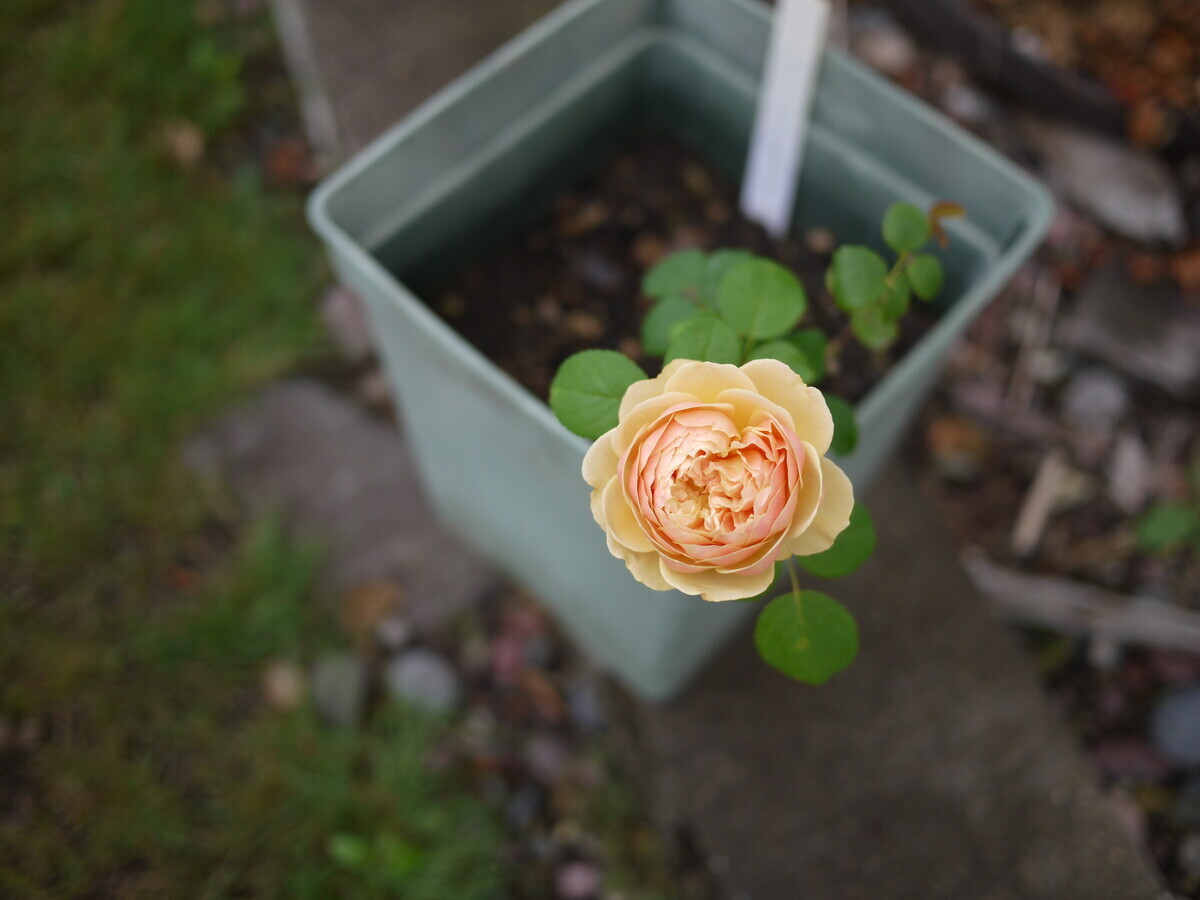 うと思って、鉢上げして様子を見ていたバラが、今朝にちょっと弱いのであります