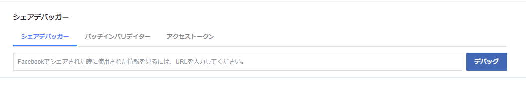 まずはfacebookの「シェアデバッガー」です。以下のサイトにアクセスしてください。