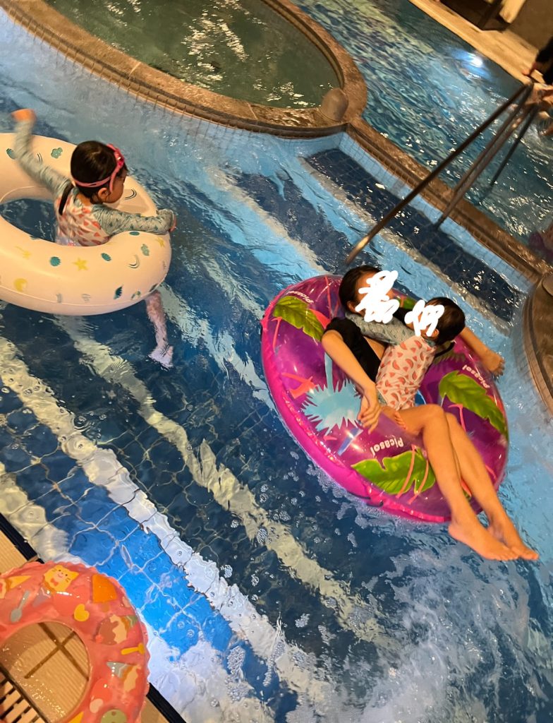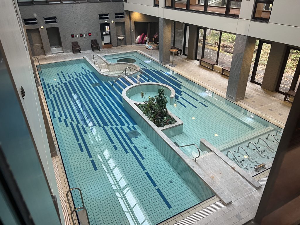 ここは年中オープンしている室内温水プール✨夏だけでなく、冬でも外の雪景色を眺めながらプールで遊べるという貴重な体験ができます😆プールの半分は温水プールで、もう半分はジャグジーのあるお湯のプール!