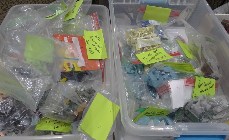 The room trading was a lot better for us this year than the show itself. We had fun talking to old friends and meeting new ones. This is one of our favorite shows because it takes place over a few days. And it is a relaxed setting where you can take your time looking through things without feeling your being rushed. It is great if you are a plastic collector, but you can find some really good deals if you are a metal collector too. It is really a treasure hunt, not knowing what you will find. As we will see in the next article I do about the show with all the goodies I had found.