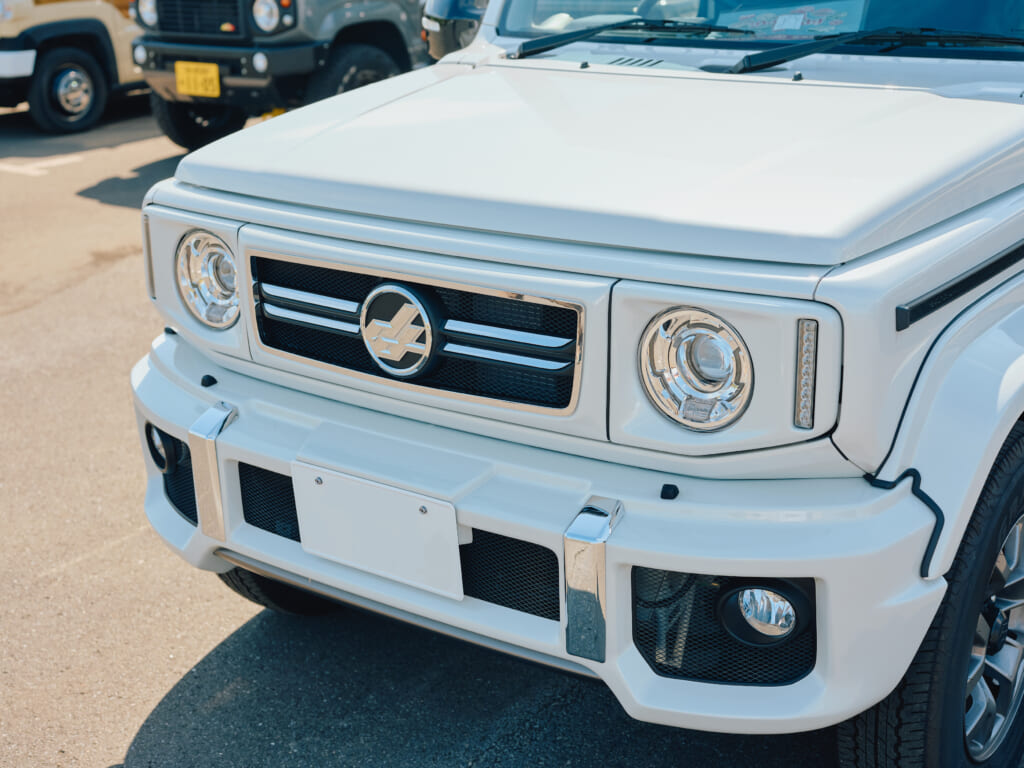 ジープのラングラー サハラをオマージュし、バンパーはフロントをダムドの「リトルD」モデルに、リアを「リトルG」のモデルにチェンジ。グリルはKLCのフェイスグリルSJを選び、ボディカラーに合わせて塗装した。オールドカントリーのホイールを履かせ、ちょいレトロな雰囲気も加えている。