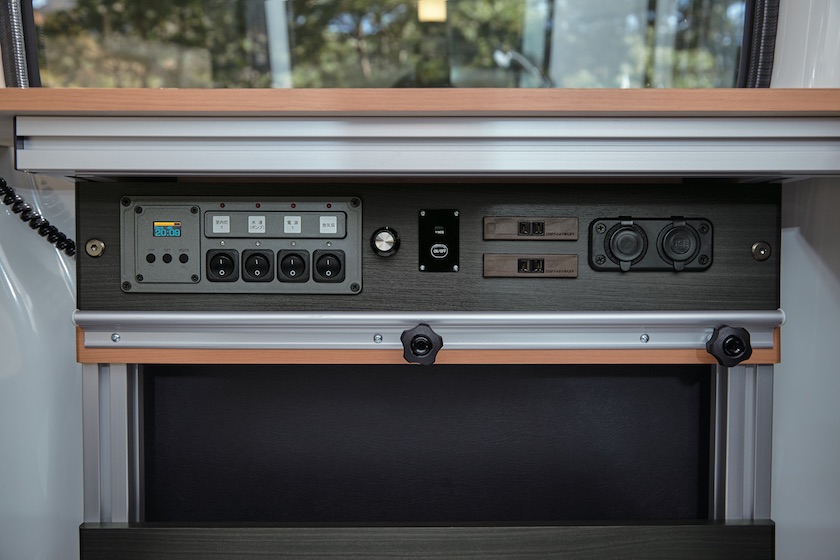 また、オプションでシャワー付きシンク、冷凍・冷蔵庫、USBソケット付きの電源といったアウトドアシーンで便利な機能を追加することも可能です。