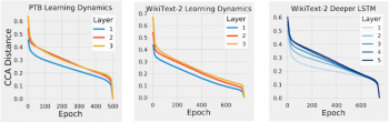 論文「Insights on Representational Similarity in Neural Networks with Canonical Correlation」では、上記をさらに発展させ、CNNの複合表現の類似性について新しい洞察を提供した。「過去に見た事のある画像のみを正確に分類できるCNN(記憶化、過学習)」と「過去に見た事がない画像でも正確に分類できるCNN(一般化。汎化)」の複合表現の違いなども研究した。重要な事は、我々はこの手法を拡張し、リカレントニューラルネットワーク(RNN)の動作原理についても見識を得る事ができた事である。