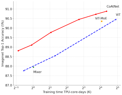 ・CoAtNetはViTモデルよりも4倍速く学習可能でImageNetで最先端のスコアを更新