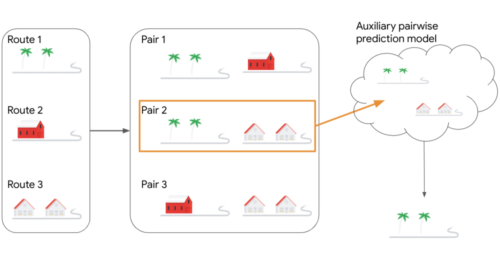 私達のアルゴリズムでは、代わりに候補経路のすべてのペアを考慮します。ペア2が現在の回で最も高いスコアを持つペアであるとします。このペアは補助的なMLペアワイズ予測モデルに渡され、2つのルートのうちどちらが優れているかを出力します。