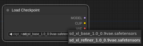 配置されたノードで「sd_xl_refiner_1.0_0.9vae.safetensors」を選択