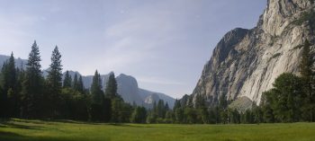 夜のヨセミテ渓谷。Canon DSLR、28mm f/4レンズ、3分露出、ISO 100。星を見ることができるので夜間の写真ですが、まるで昼間のように見えます。