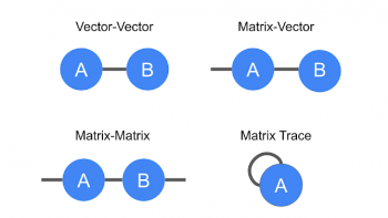 テンソル縮約の図。ベクトルおよび行列の乗算、ならびに行列トレース(行列の対角要素の合計)