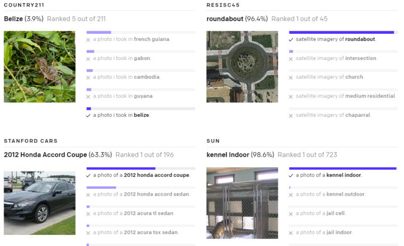 対照的に、CLIPモデルは、ベンチマークに含まれるデータを使ってトレーニングせずとも評価できるため、この方法で不正をする事はできません。これにより、ベンチマークのパフォーマンスは、実際のパフォーマンスをよりよく表現するものになります。
