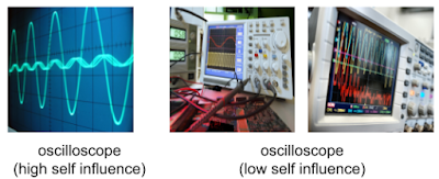 左:画面の振動だけを映して画像内に機器が写っていない珍しいオシロスコープの事例は、高い自己影響力を取得します。