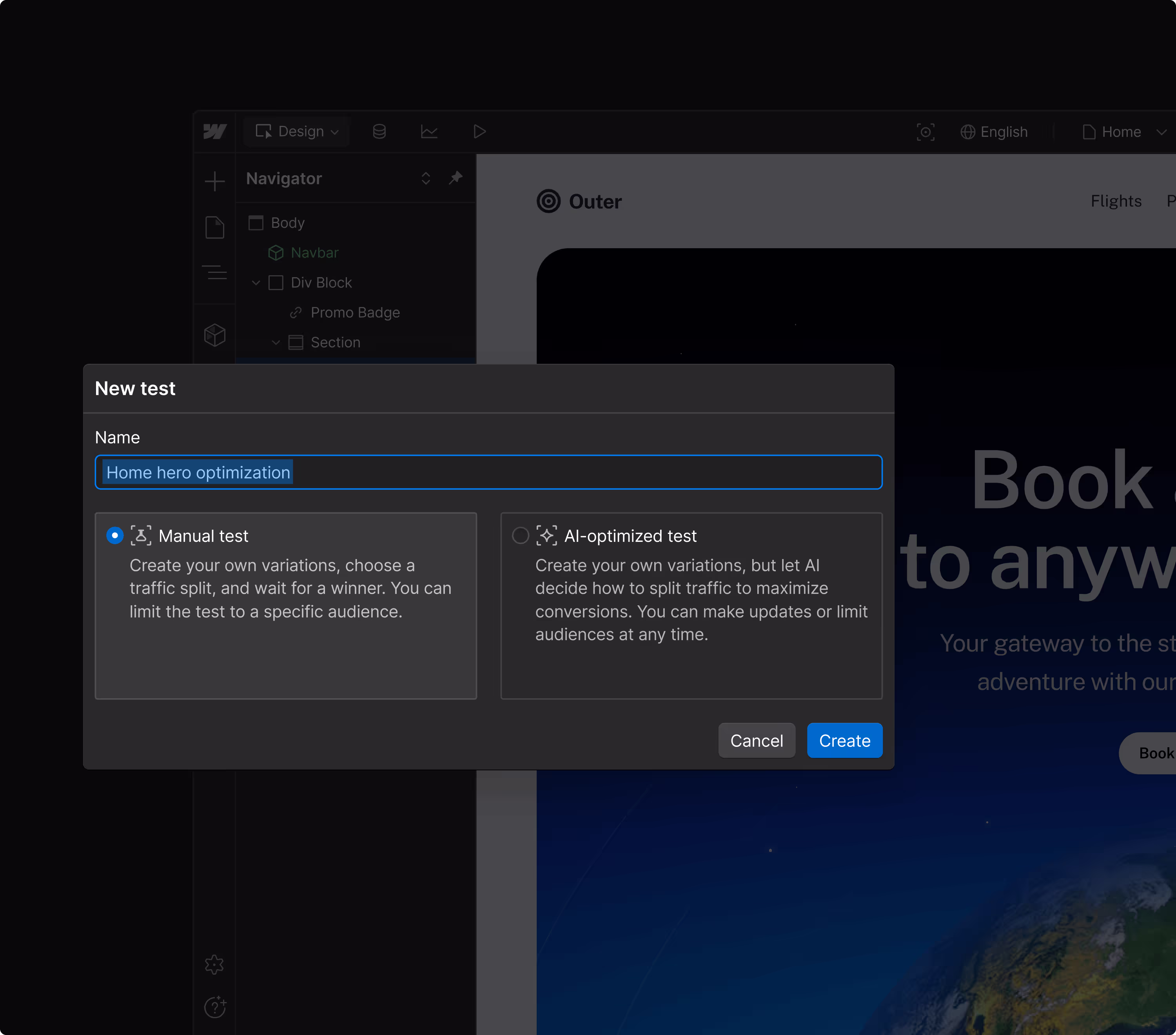 With Webflow, marketing and design can import from Figma or create their own variables, components, templates, and even full atomic design systems that scale across your entire site.