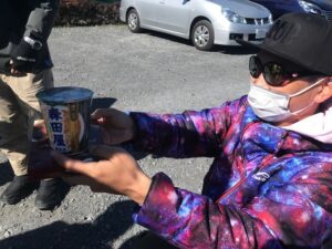 景品の参加者全員で持ち寄った豪華ルアー達がアッキーさんに贈呈されます。