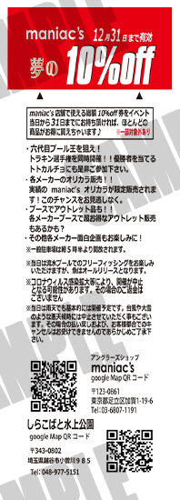 ③12月11日~31日「maniac’s」店頭で使える「10%オフ券」