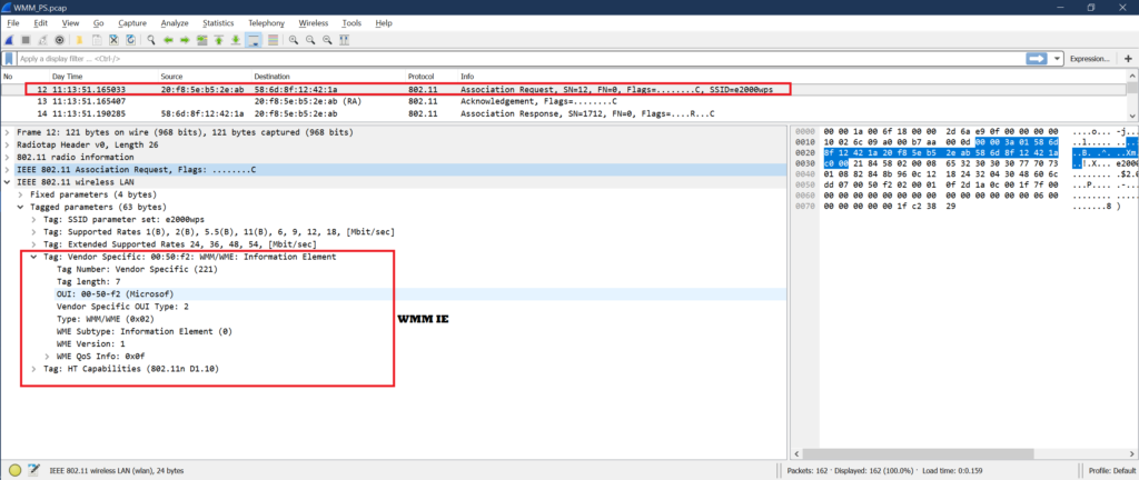 For STA WMMPS support we need to check in Association Request frame-> WME ->WME QoS Info ->Set 4 ACs [VO, VI, BE, BK] as 1 .This also means each AC is delivery and trigger enabled. As of now just remember this we will discuss in deep in another post.
