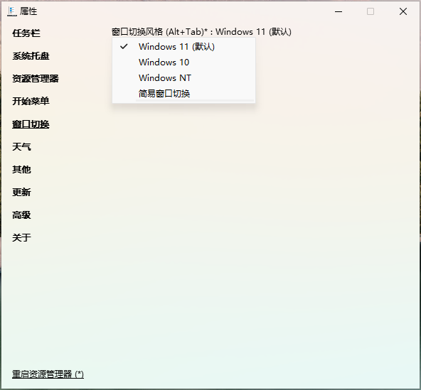4.在任务栏处右键并在菜单中点击属性可调出软件的设置界面,可根据个人使用偏好进行各项设置。