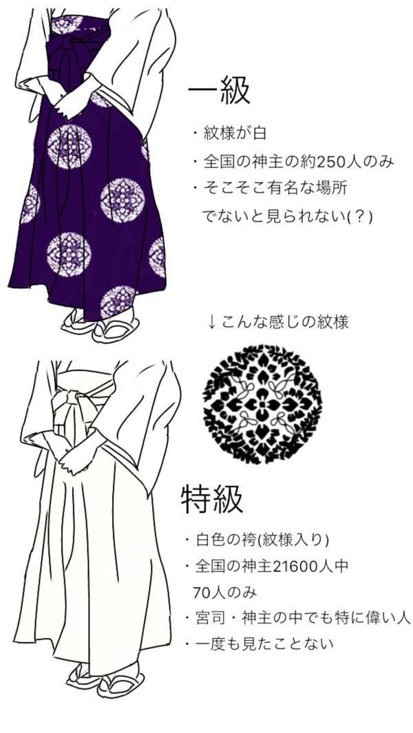 因みに白は職位に関係なく着用されることがあるそうで、伊勢神宮では皆さん白袴が基本と聞いています。