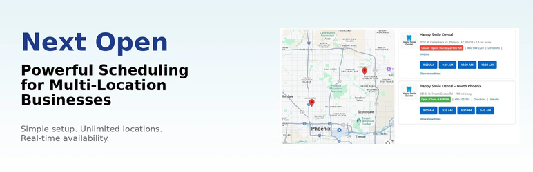Next Open is a WordPress appointment booking plugin that allows businesses to accept online bookings. It’s designed specifically for businesses with one or multiple locations.