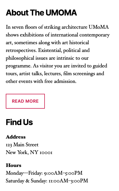 Twenty Twenty includes a Social Icons Menu; can add links to your social media profiles, and they’ll be displayed as logos in your footer.