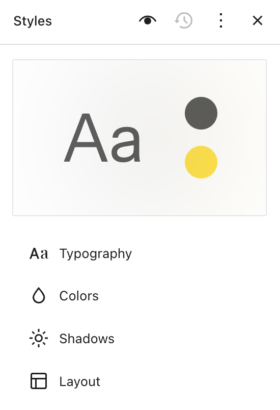 你可將網站「樣式」還原為先前的版本。在「樣式」設定中按一下省略符號 (三個點),尋找「修訂」面板。請注意,你必須先儲存變更內容,此選項才會出現。