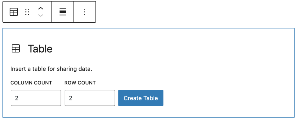 You can also use the keyboard shortcut /table to quickly insert a Table block. Remember that tables are best used for tabulated data rather than page design. For example, if you want columns, you can use the Columns Block.