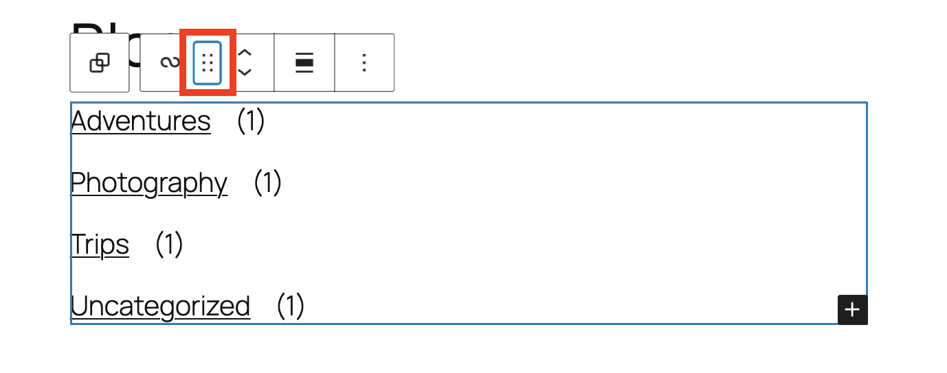 To drag and drop the block to a new location, click and hold the rectangle of dots, then drag it to the new location. The blue separator line indicates where the block will be placed. Release the left mouse button when you find the new location to place the block.