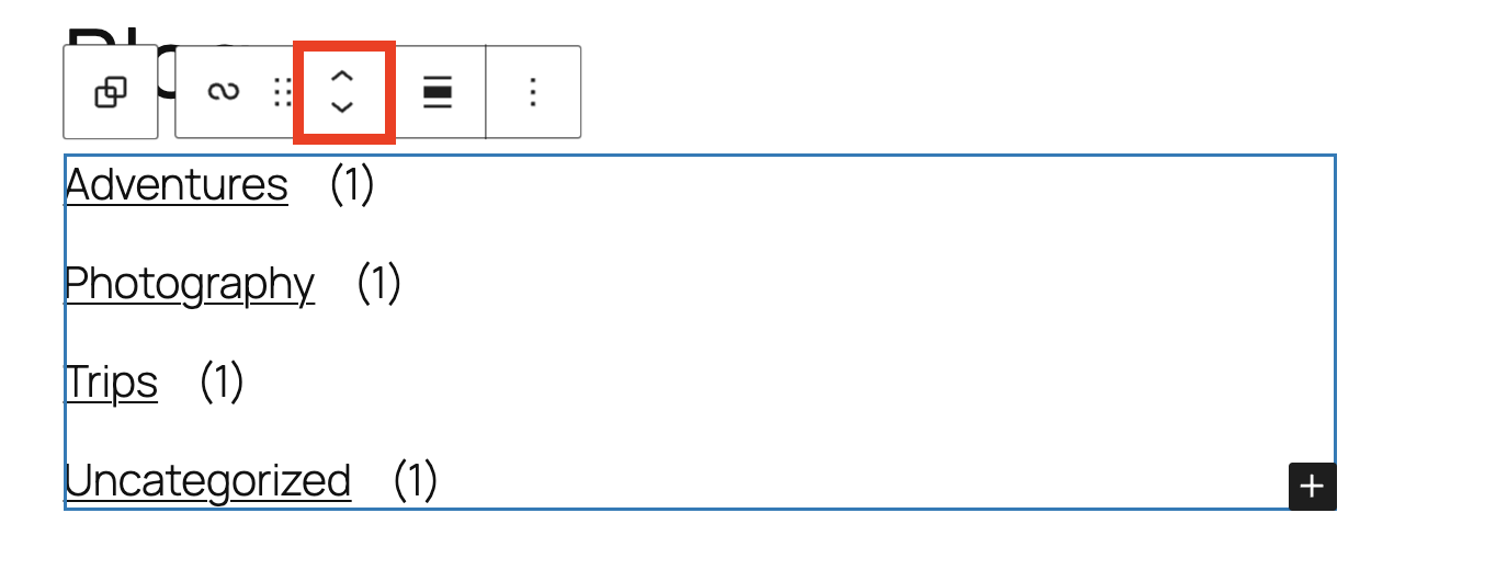 The up and down arrow icons can be used to move the block up and down on the page.