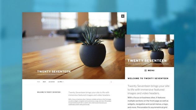 Twenty Seventeen focuses on business sites and features a customizable front page with multiple sections. Personalize it with widgets, navigation, social menus, a logo, custom colors, and more. Our default theme for 2017 works great in many languages, on any device, and for a wide range of users.