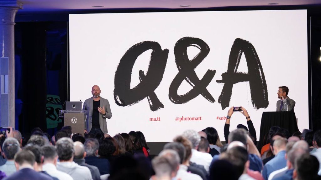 Kicking off the event, Josepha Haden Chomphosy, Executive Director of the WordPress project, spoke about the community’s heart and spirit as what fuels hope for the future, ensuring the freedoms of the open web for all. She invited Matt on stage with a closing statement of confidence that such values and characteristics will move the project forward into the next 20 years as it has for the last 20.