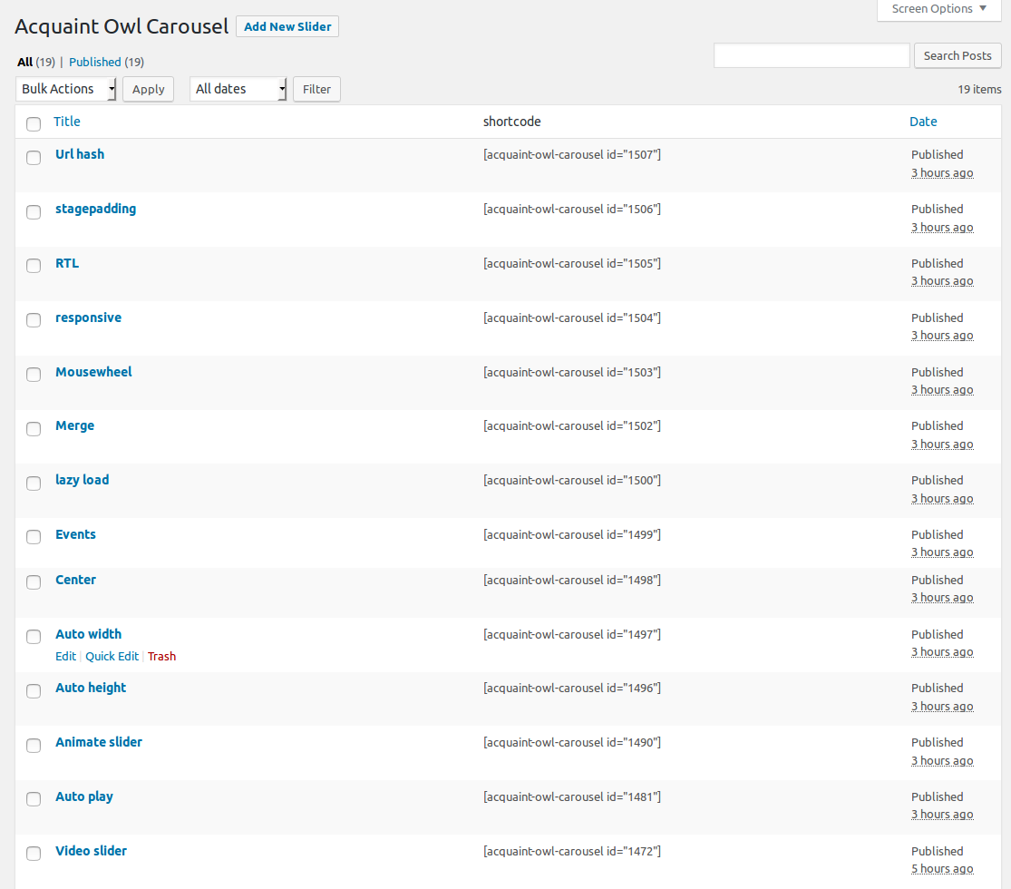After activate plugin you will find new section in menu which says “Acquaint Owl Carousel”.