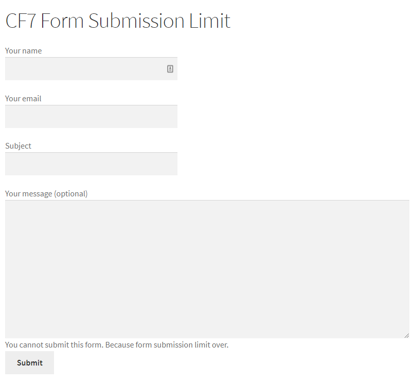 CF7 Form Submission Limit plugin help you control Contact Form 7 form total submission limit. You can set submission limit settings for each form.