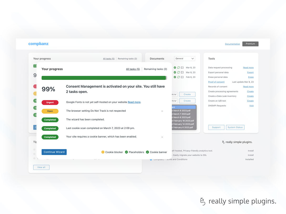 Complianz offers a Full Privacy Suite for WordPress on Complianz.io with even more features: