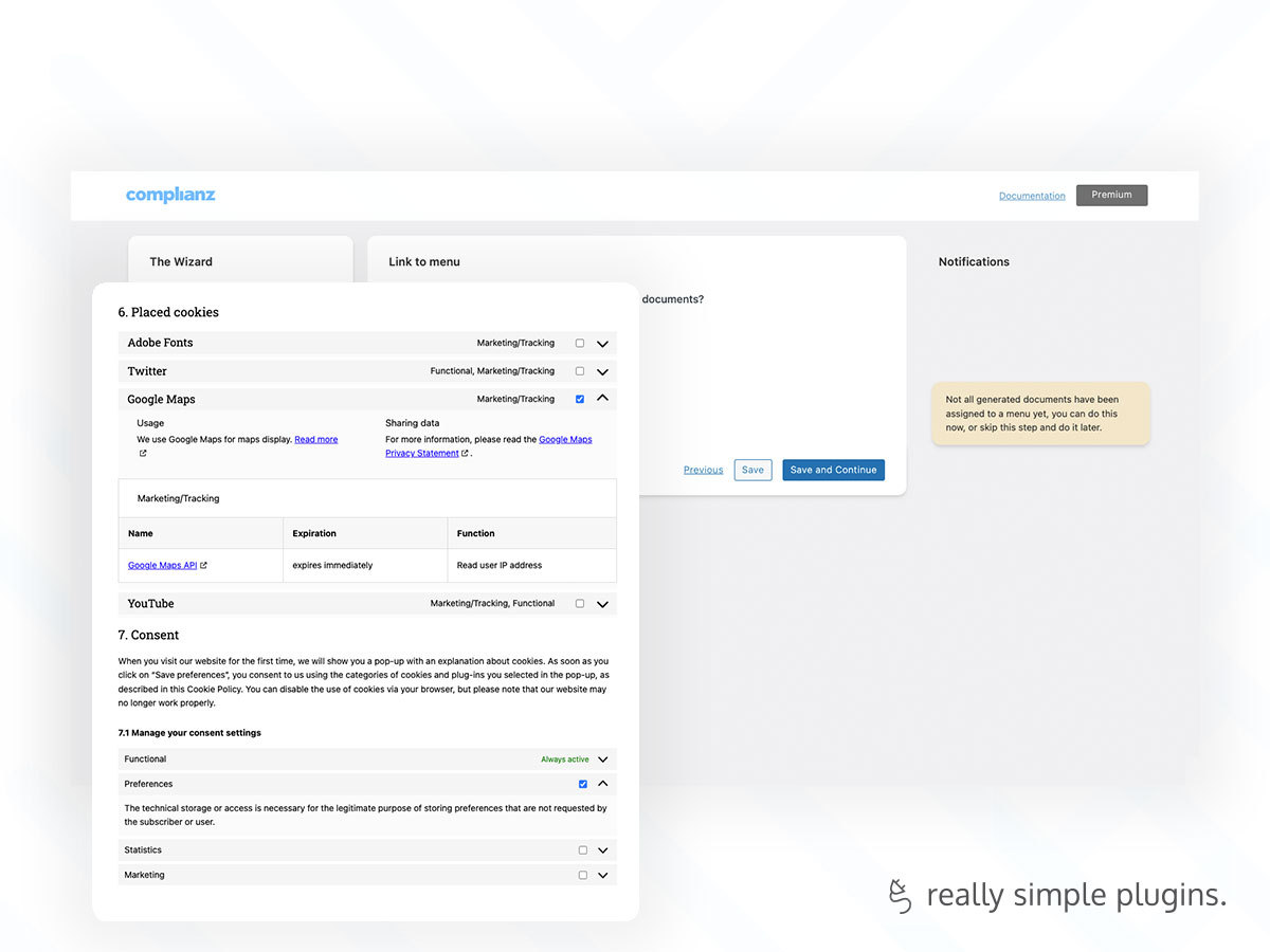 • The Wizard: Generate a cookie policy and configure consent management to your specific needs.