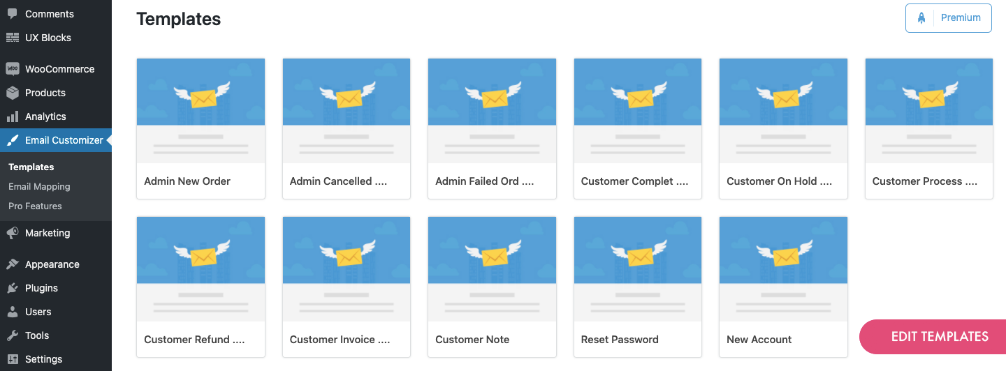 The plugin comes with 11 WooCommerce default email templates for various status, which you can customize from scratch to align with your brand.
