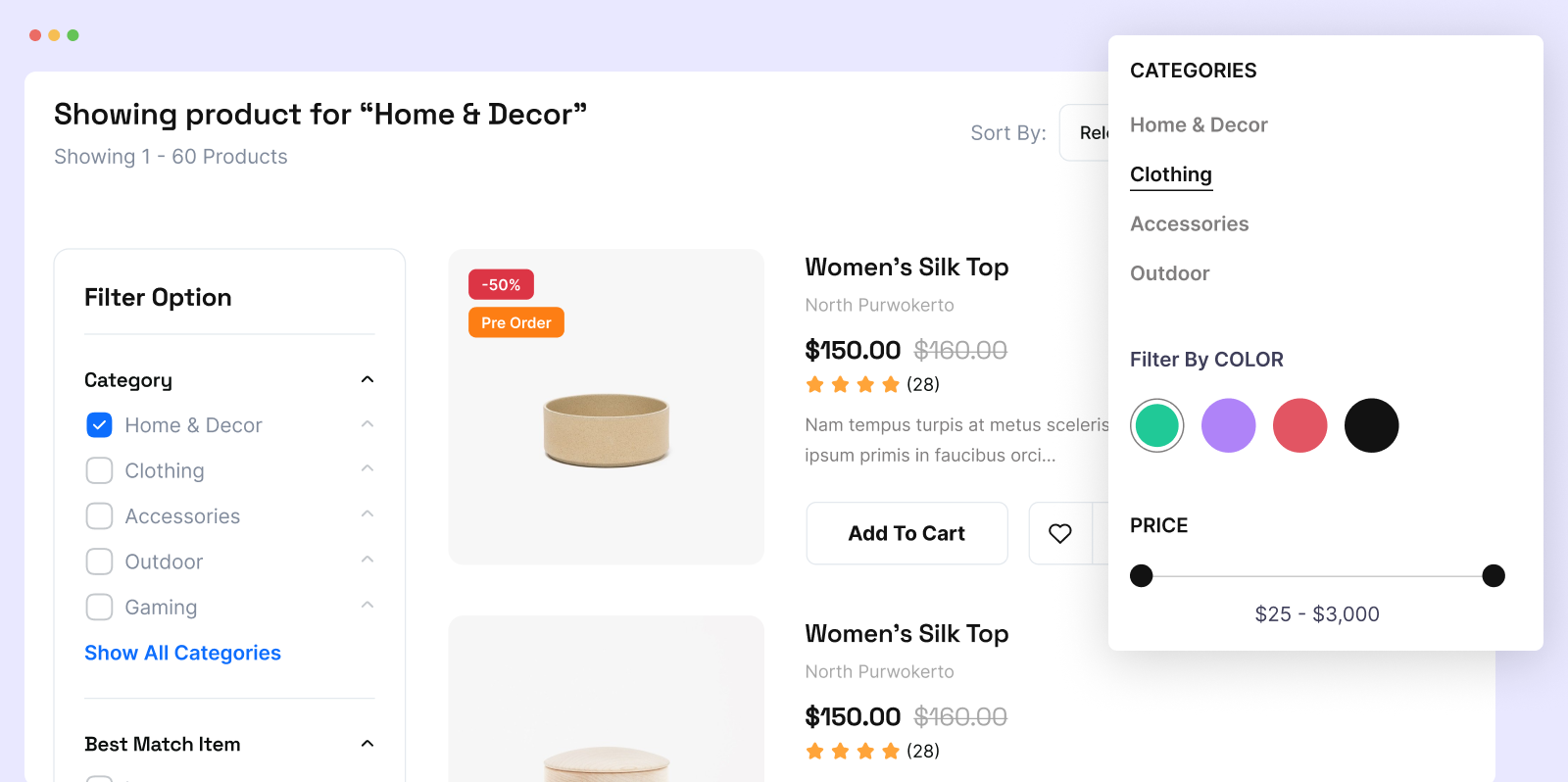 👉 Filter by Color – Let your users shop by their favorite colors! Our Color Filter feature enables them to refine search results effortlessly. Ideal for e-commerce and design sites, users can pick a color from a palette, instantly displaying only products that match. Enhance their shopping experience with vibrant choices!