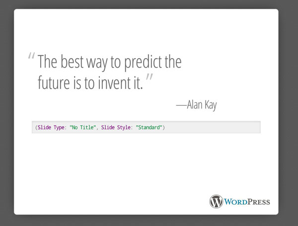If you view the demo, it will walk you through the styles and slide types available in this plugin. The sample presentation is available for you to download so you can see the slides in action. Just download the xml file, and import it to WordPress the way you normally import WordPress to WordPress.