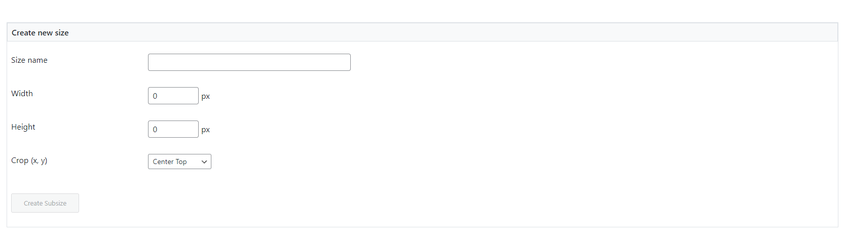 - Create any custom subsize per image.
