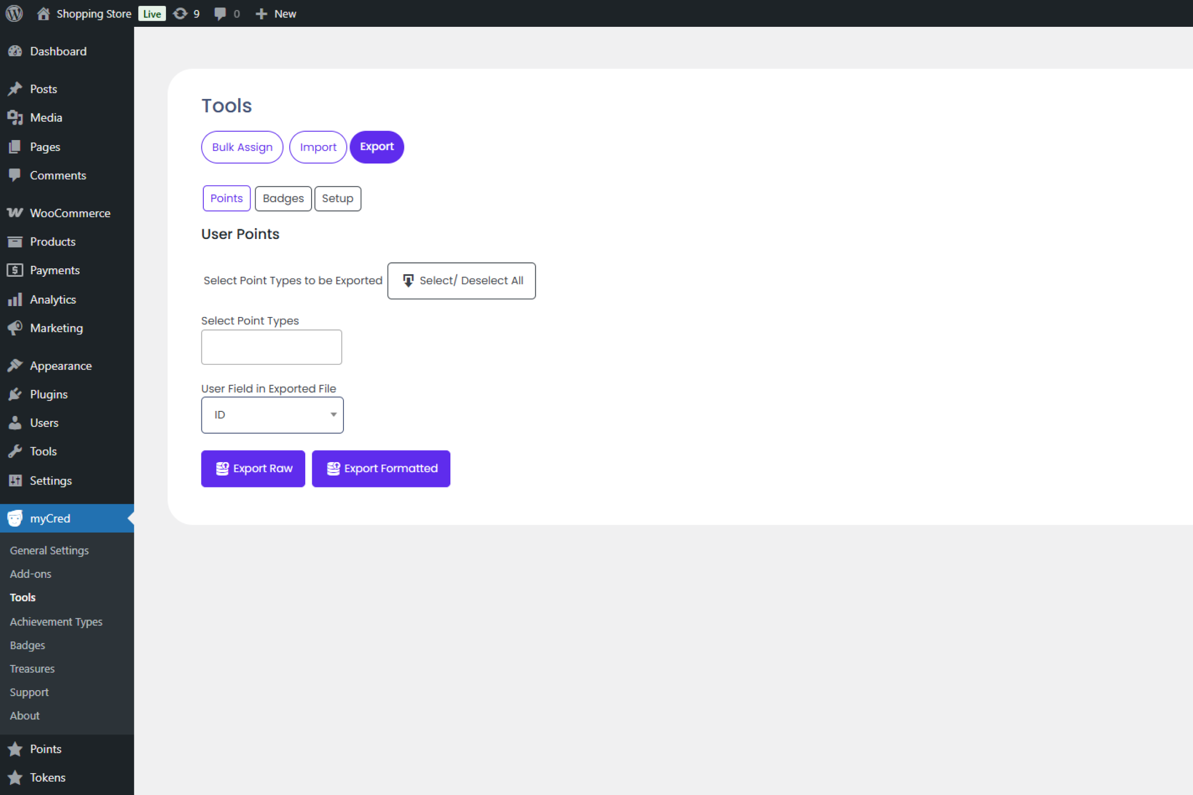 – Import/Export Setup Settings: Setup myCred quickly by importing/exporting setup settings in JSON format. Export option is available for all or specific user fields.