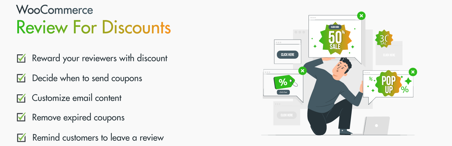 Reward verified buyers for submitting product reviews with WooCommerce review coupons.