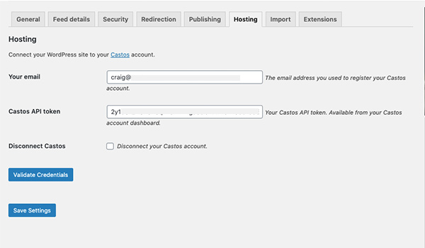 - Then you can connect Seriously Simple Podcasting to your Castos account, if you’re hosting with Castos. This offloads all of the file storage and delivery from your WordPress site and host.