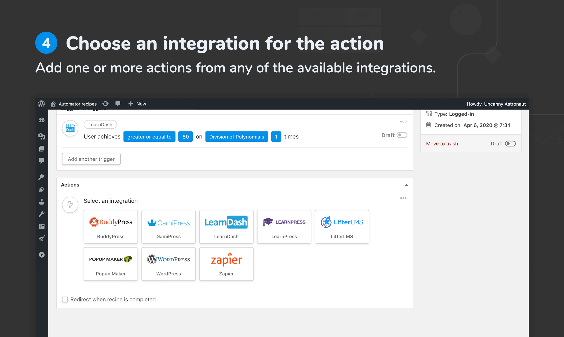 No coding skills are required. Uncanny Automator is built for non-developers to build automations using our intuitive recipe builder.