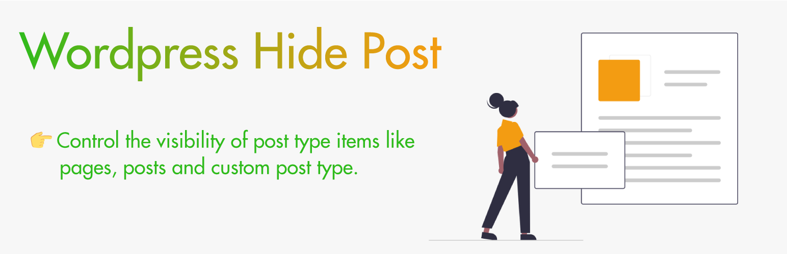 WP Hide Post is the simplest WordPress plugin to hide posts, pages, custom post types, and WooCommerce products without deleting them. Control where your content appears — on the homepage, category pages, search results, RSS feeds, widgets, or the REST API — while keeping direct links live for SEO and sharing.