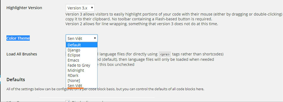 This plugin allow you to add and custom SyntaxHighlighter\’s theme. No need to edit source code of SyntaxHighlighter.