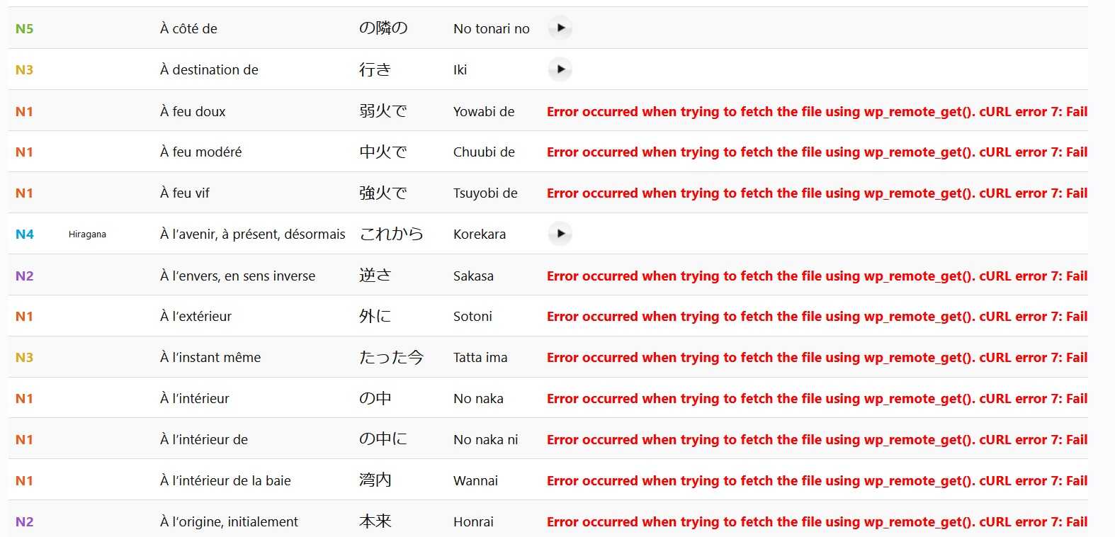 This is why I think it’s a loading issue (but maybe I’m wrong?).Is it possible, when an error occur, to not display an error message which is destroying my table design, but just the audio button even if it’s not working ? ^^”