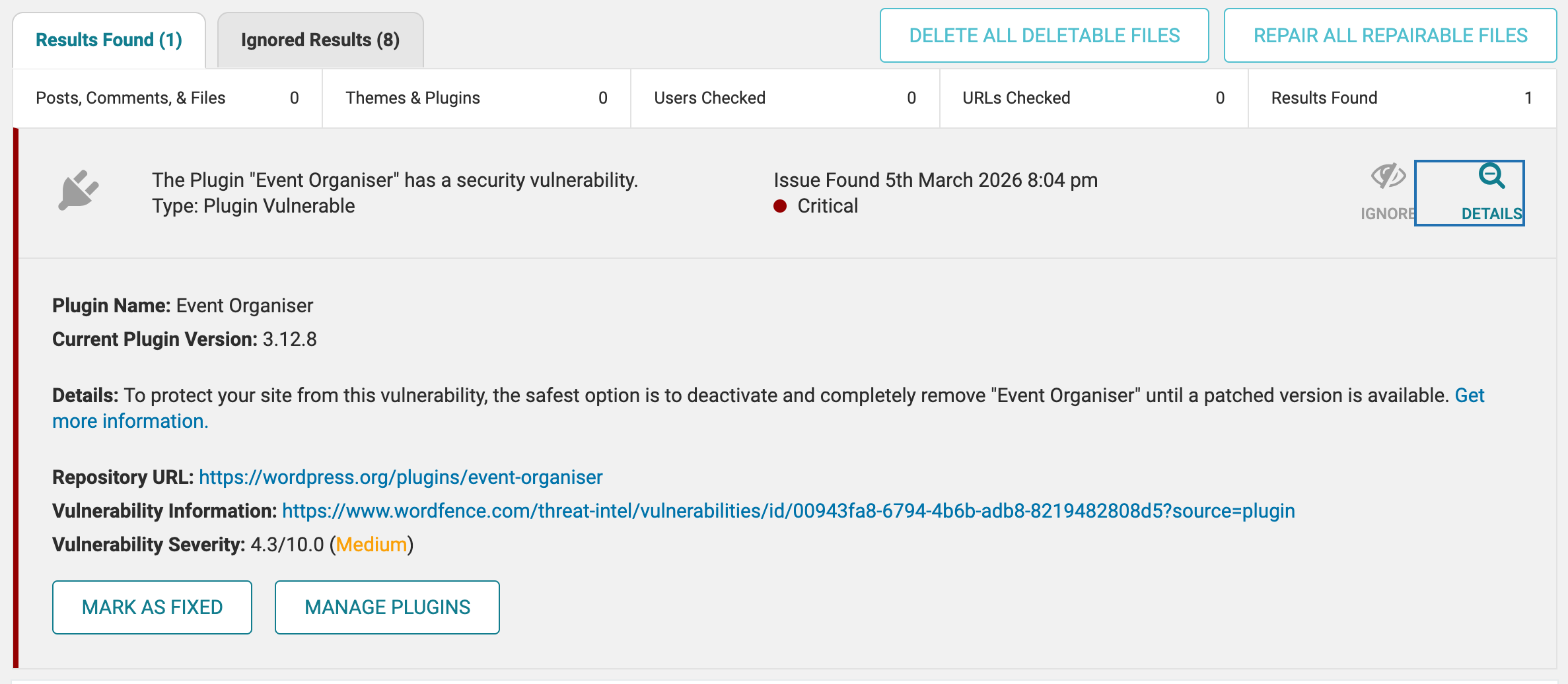 However after tying these sadly Wordfence is still flagging as critical. Hopefully the plugin devs bring out an update soon.- This reply was modified 6 days, 3 hours ago by Warren. Reason: removed a stray ")"